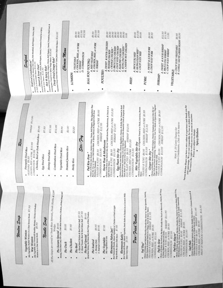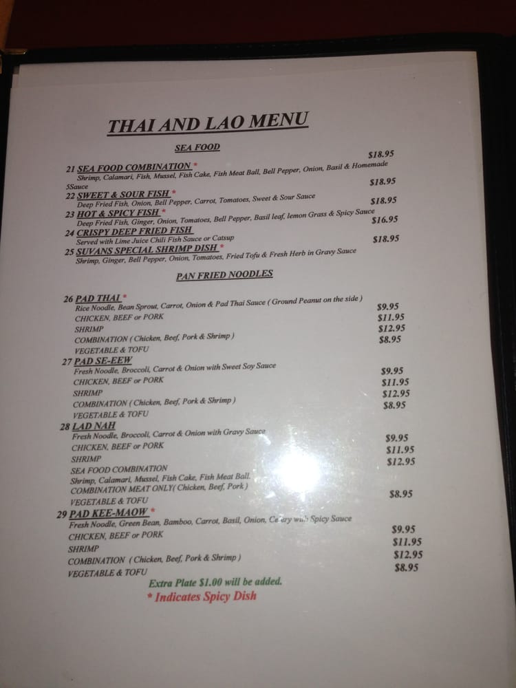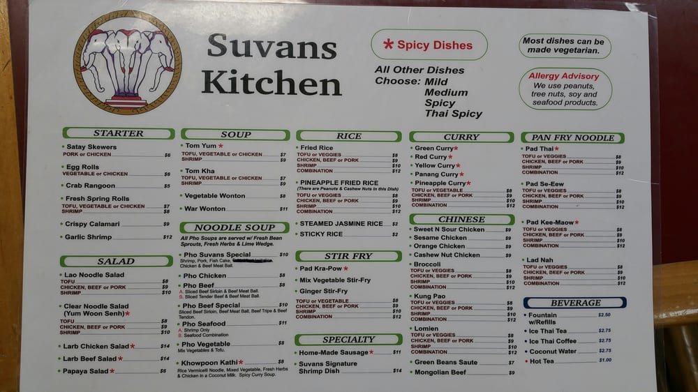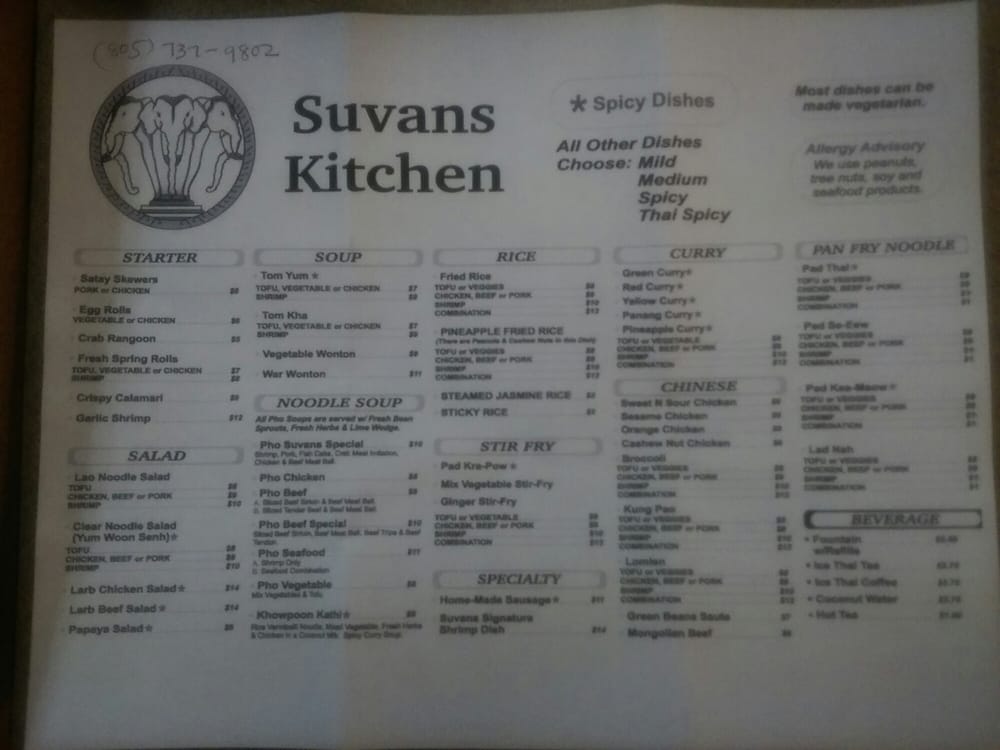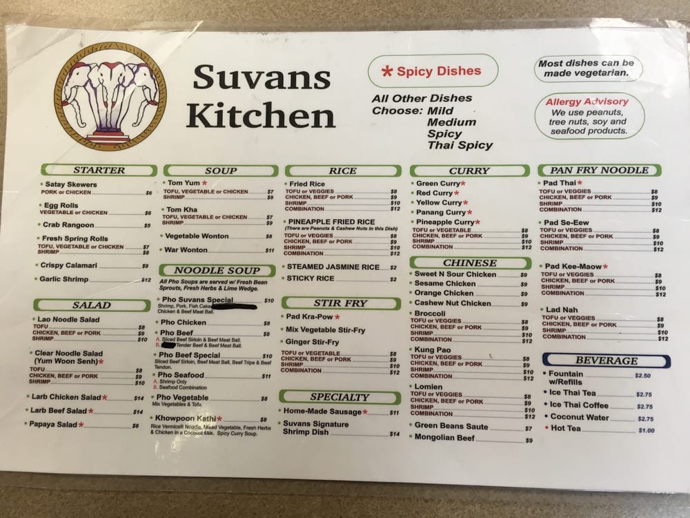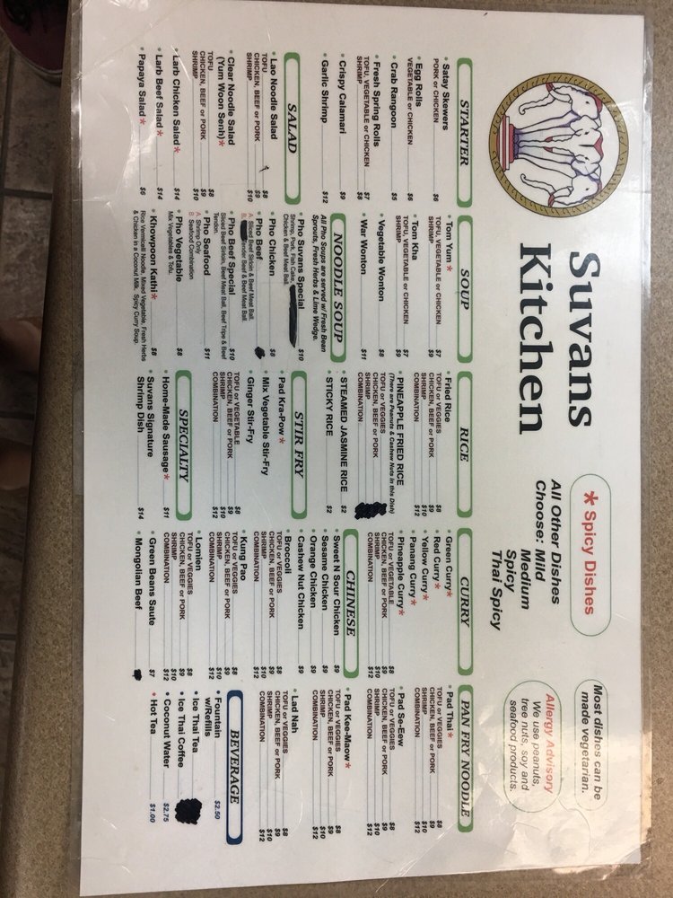 Suvans Kitchen Menu