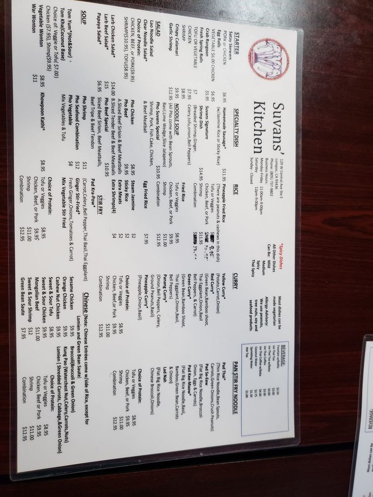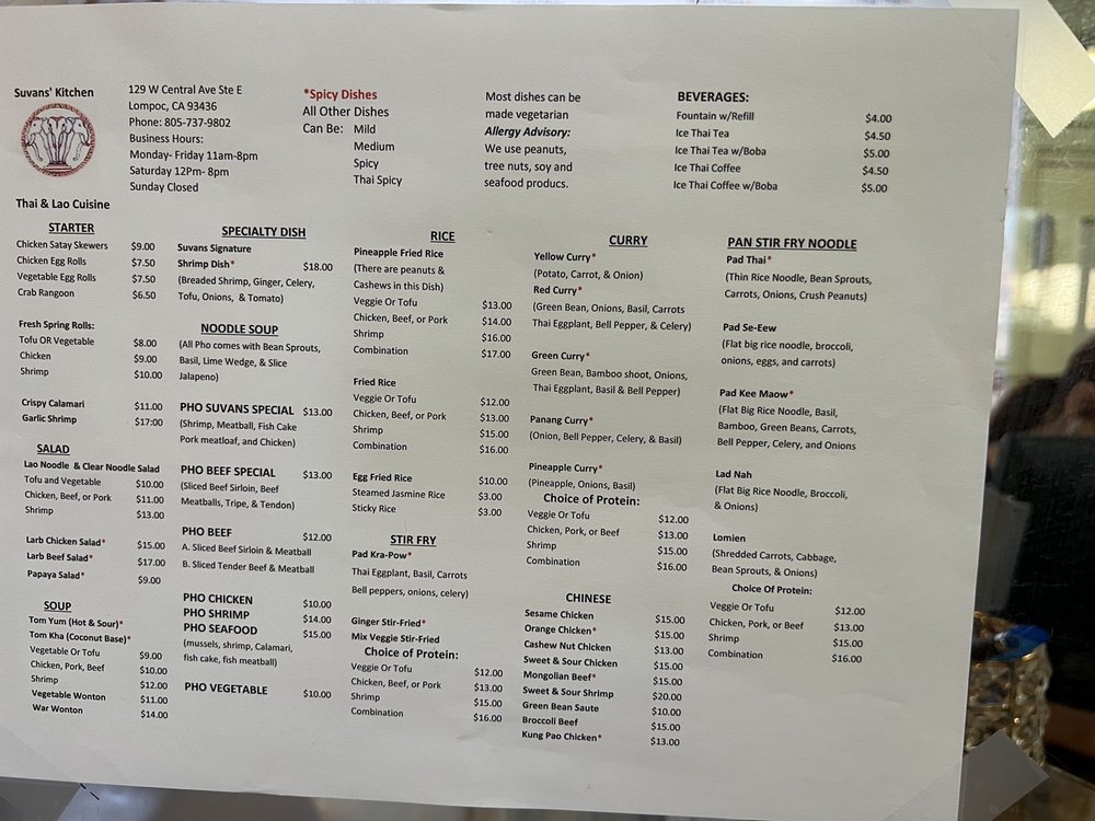 Introducing Suvans Kitchen, a culinary gem located at 129 W Central Ave in Lompoc, CA. Specializing in Laotian, Thai, and Chinese cuisine, this vibrant eatery offers a range of options from casual dining to takeout and delivery. Customers rave about the generous portions and the freshness of the ingredients, with dishes like the Orange Tofu earning accolades for their incredible flavor and perfect texture.